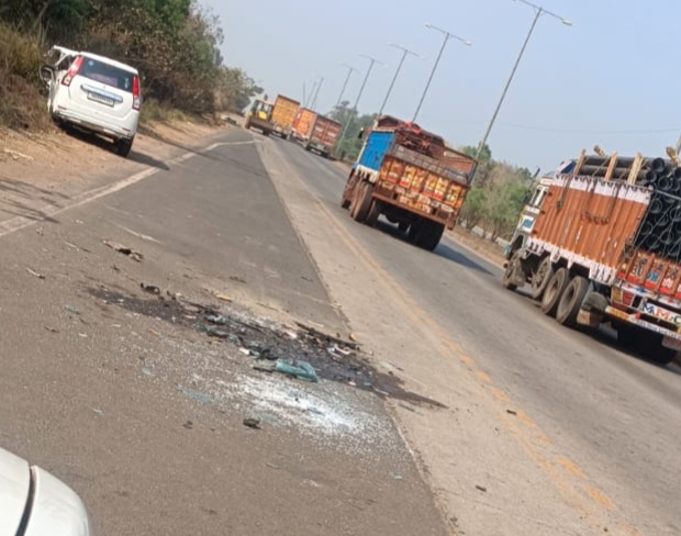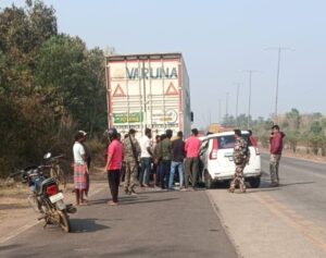 बहरागोड़ा दरीसोल चौक पर खड़े ट्रक में घुसी कार, दो घायल..