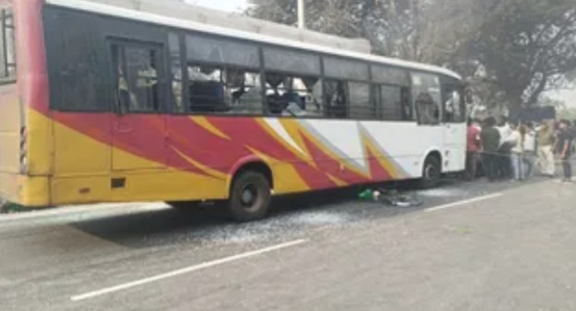 में बस की चपेट में आने से एक साइकिल सवार की दर्दनाक मौत।