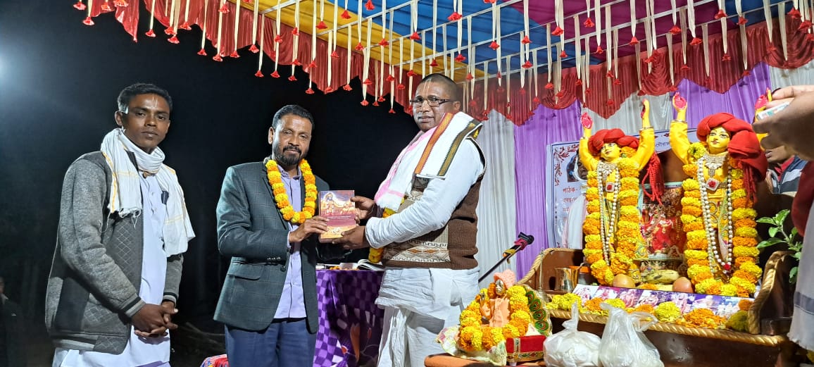 चाकुलिया: (विश्वकर्मा सिंह) चाकुलिया प्रखंड के बीरदोह पंचायत अन्तर्गत रघुनाथपूर गांव में सान्दीपनि आश्रम द्वारा तीन दिवसीय गीता पाठ कार्यक्रम गीता माधूरी में भाजपा के पूर्व जिलाध्यक्ष सह समाजसेवी सरोज महापात्र ने मुख्य अतिथि के रूप में उपस्थित होकर भगवान के चरणों में माथा टेक कर लोगों की सुख और समृद्ध के लिए कामना किया. इस दरम्यान गीता पाठक नवदीप मायापूर पश्चिम बंगाल से आये श्री श्री राजेश प्रभू जी को भाजपा नेता सरोज ने अंगवस्त्र देकर सम्मानित किया एवं प्रभू जी से आशीर्वाद भी लिया.