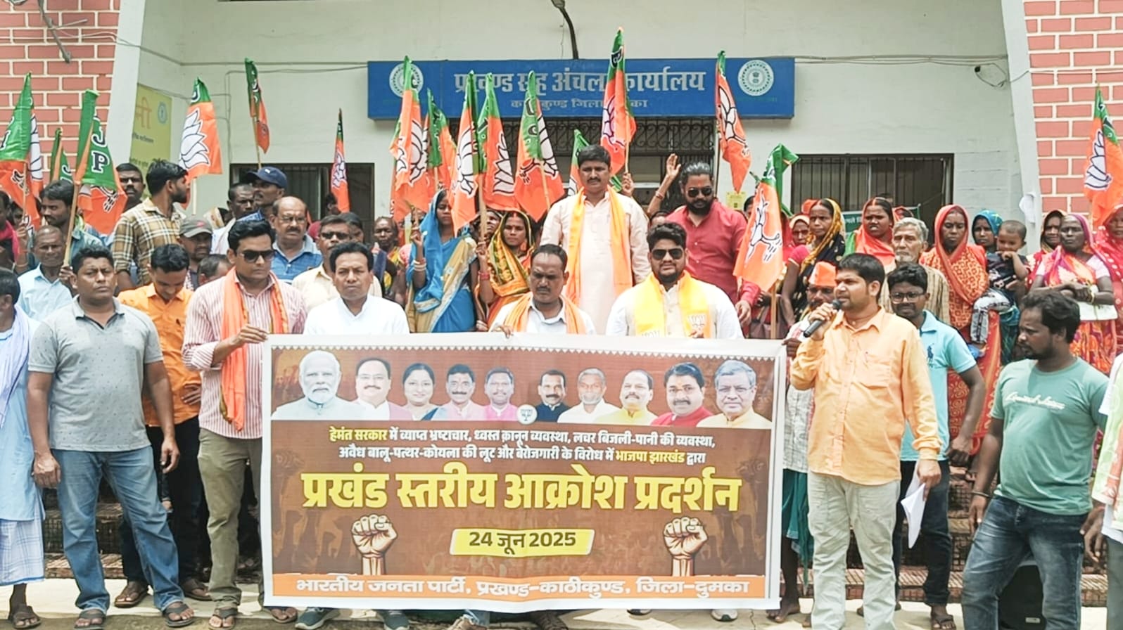 काठीकुंड में भाजपा का आक्रोश प्रदर्शन, हेमंत सरकार को बताया विफल