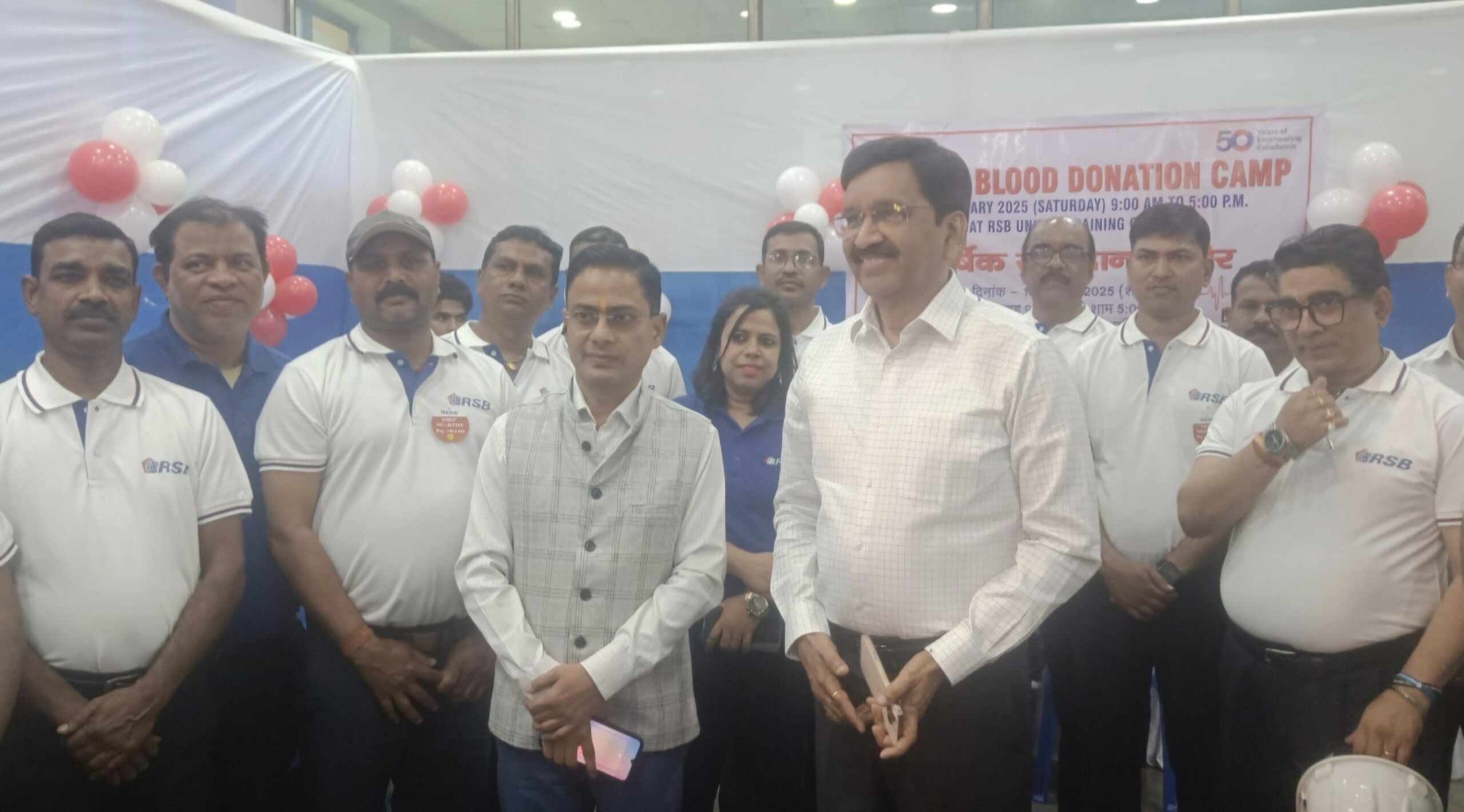 सरायकेला खरसावां/ आदित्यपुर : सरायकेला जिला के आदित्यपुर औद्योगिक क्षेत्र स्थित फेज 7 स्थित आरएसबी प्लांट 3 में शनिवार को वार्षिक रक्तदान शिविर का आयोजन किया गया। जिसमे मुख्य अतिथि के रूप में गम्हरिया के प्रखंड विकास पदाधिकारी अभय कुमार द्विवेदी शामिल हुए। आरएसबी प्लांट 3 में आयोजित रक्तदान शिविर में शिरकत करते हुए बीडीओ अभय कुमार द्विवेदी ने रक्तदान करने पहुंचे कंपनी के कर्मचारी एवं मजदूरों का उत्साहवर्धन किया। इस मौके पर विशिष्ट अतिथि के रूप में आरएसबी कंपनी के वाइस प्रेसिडेंट एसके बेहरा, संगीता बेहरा, कंपनी अधिकारी जया सिंह मुख्य रूप से मौजूद थी। पत्रकारों से बातचीत के क्रम में अभय कुमार द्विवेदी ने कहा कि रक्तदान सबसे पवित्र काम है। सभी को इस नेक काम में बढकर का हिस्सा लेना चाहिए। इन्होंने कहा कि प्रत्येक 90 दिन के अंतराल पर नियमित रूप से रक्तदान करने से स्वास्थ्य बेहतर बना रहता है। इन्होंने आरसीबी के तीनों प्लांट में समय-समय पर आयोजित होने वाले रक्तदान शिविर कार्यक्रम की सराहना की और कहा की आरएसबी कंपनी द्वारा जनहित में रक्तदान शिविर आयोजित करना एक बेहतर प्रयास है।