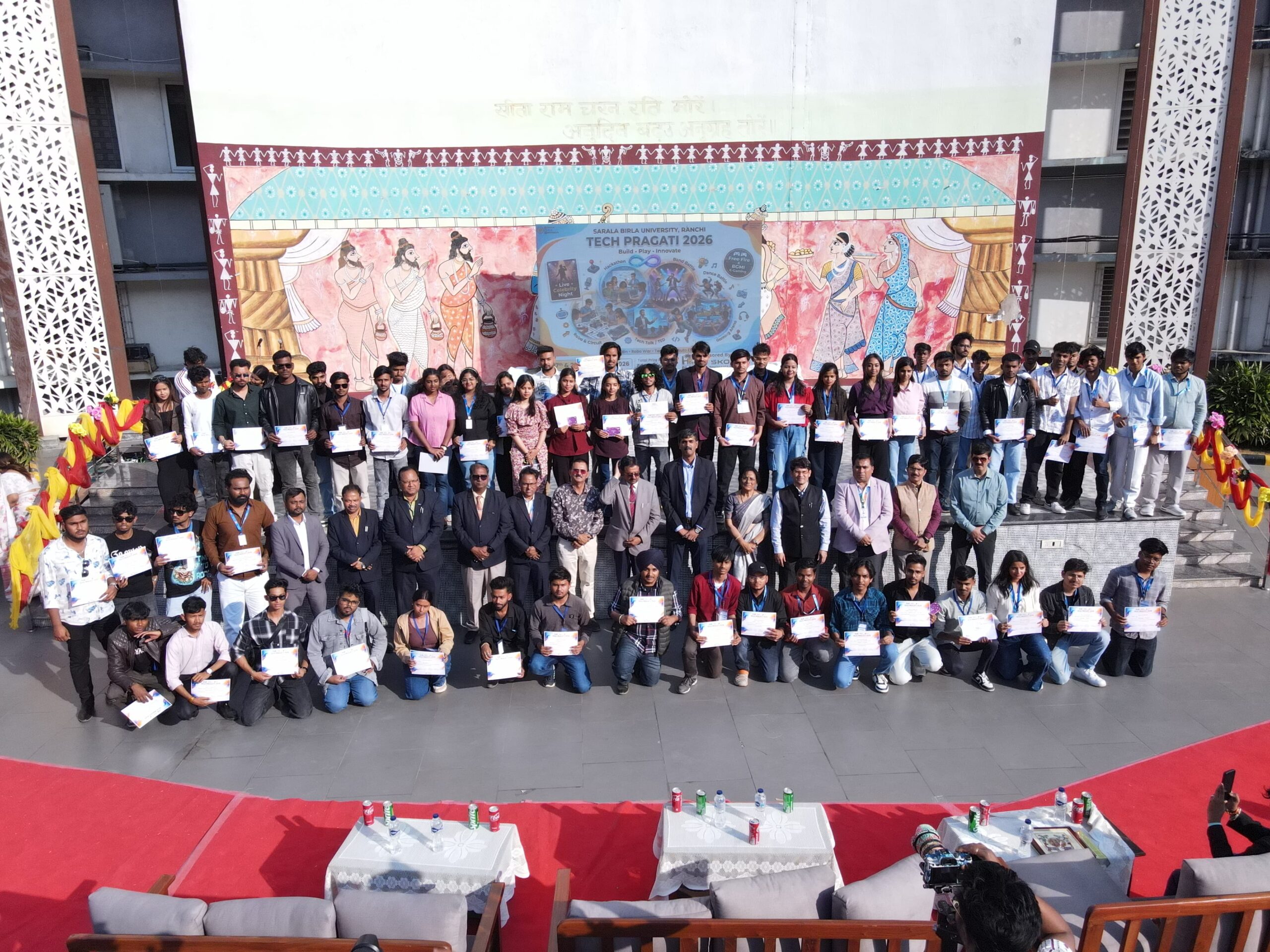 नामकुम(राँची) । सरला बिरला विश्वविद्यालय में आयोजित दो दिवसीय टेक फेस्ट ‘टेक प्रगति’ का समापन हुआ। इस दौरान फोटोग्राफी प्रतियोगिता से लेकर हैकथन, फिन टेक चैलेंज, सेलेस्टीयल गेमिंग इत्यादि प्रतियोगिताओं का आयोजन किया गया। दो दिन तक चले इस आयोजन में विभिन्न विश्वविद्यालयों के डेढ़ हजार से ज्यादा प्रतिभागियों ने हिस्सा लिया। कार्यक्रम के अंतिम दिन प्रतियोगिताओं के विजेताओं को पुरस्कृत किया गया। इस अवसर पर विवि के महानिदेशक प्रो गोपाल पाठक, कुलपति प्रो सी जगनाथन एवं कुलसचिव प्रो एस बी डांडिन विशेष रूप से उपस्थित रहे। टेक फेस्ट के समापन के मौके पर मशहूर बॉलीवुड सिंगर लक्ष्य कपूर ने अपनी उम्दा प्रस्तुति से श्रोताओं का जमकर मनोरंजन किया। उनके गानों पर विद्यार्थियों ने जमकर मस्ती की। एसबीयू के प्रतिकुलाधिपति बिजय कुमार दलान और राज्यसभा सांसद सह निदेशक, प्लानिंग एंड डेवलपमेंट डॉ प्रदीप कुमार वर्मा ने इस कार्यक्रम के आयोजन पर हर्ष प्रकट करते हुए शुभकामना संदेश प्रेषित किया है।