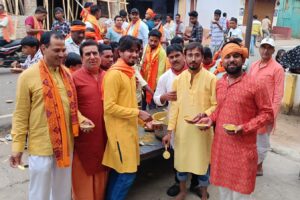 रामनवमी जुलूस को लेकर जगह जगह पर समाजसेवियों द्वारा स्टाल लगाकर लोगों के बीच पानी और शरबत का वितरण किया गया. वहीं मनोज शर्मा द्वारा घुघनी का वितरण किया गया.