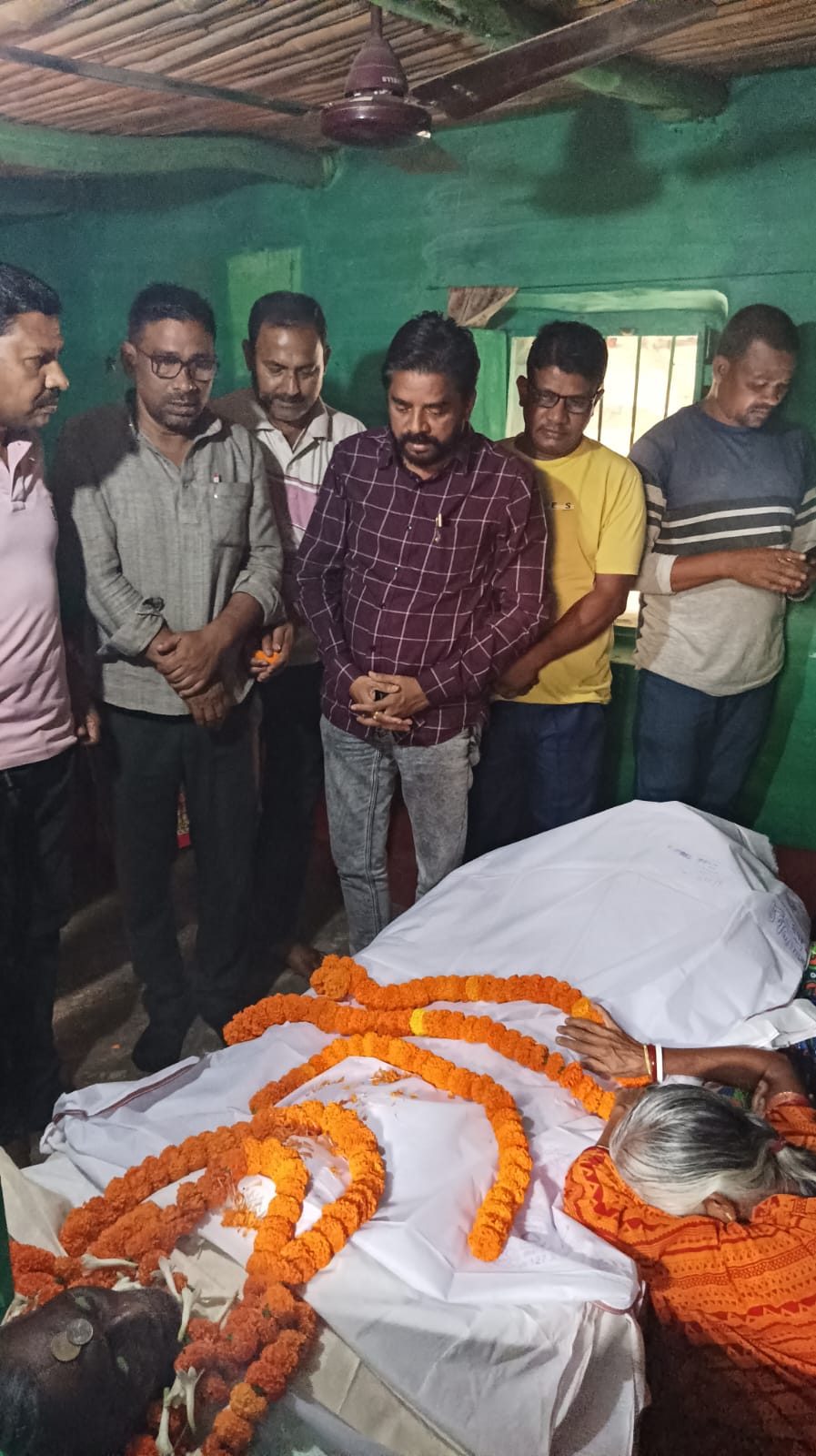 चाकुलिया: प्रखंड प्रमुख के पिता सेवानिवृत शिक्षक सह आंदोलनकारी भूदेव चंद्र करुणामय के पार्थिव शरीर पर पुष्प अर्पित कर दी श्रद्धांजलि