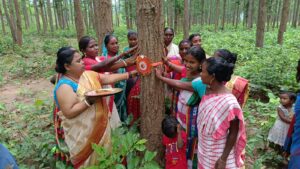 चाकुलिया प्रखंड के भातकुंडा पंचायत स्थित भालुकबिंदा गांव के सुनसुनिया जंगल में वन सुरक्षा समिति और जोहार भारत फाउंडेशन के संयुक्त तत्वावधान में रक्षाबंधन कार्यक्रम का आयोजन किया गया. इस अवसर पर पद्मश्री जमुना टुडू ने समिति के सदस्यों के साथ जंगल में साल पेड़ पर राखी बांधकर जंगल संरक्षण करने का संकल्प लिया.