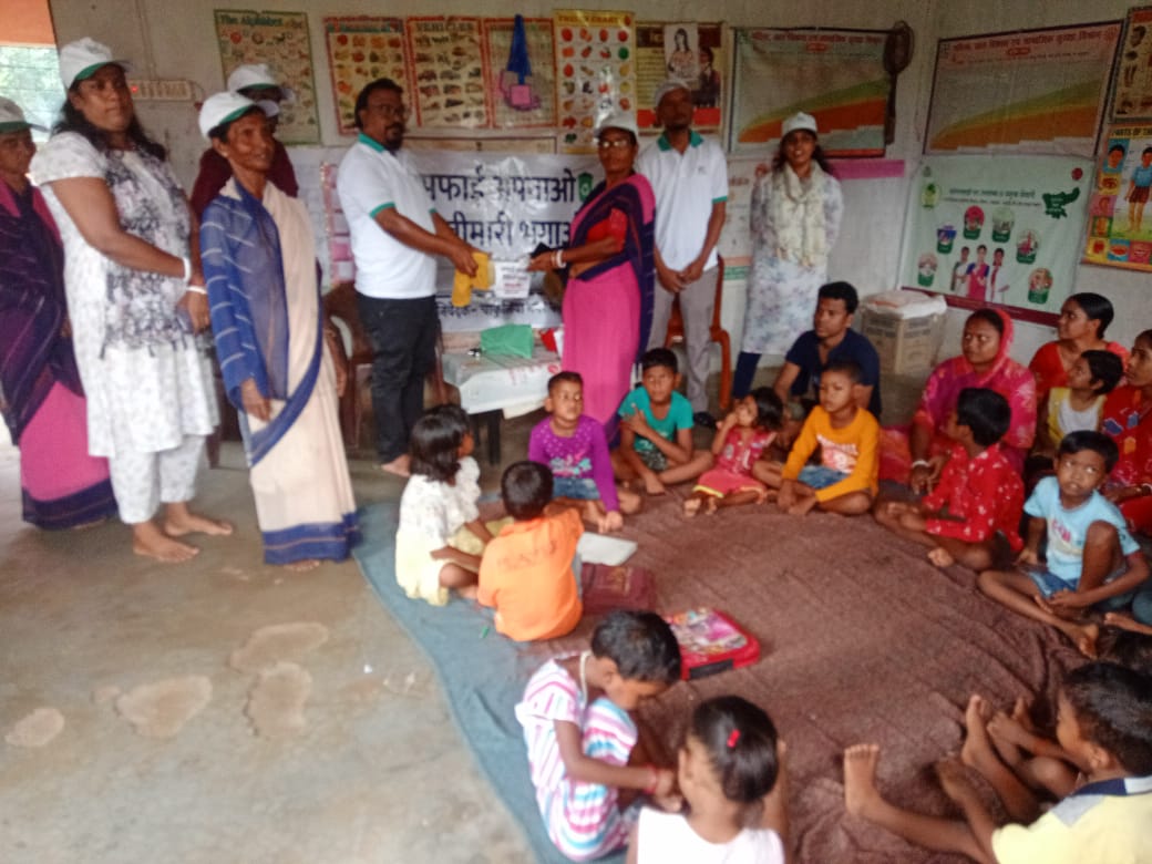 चाकुलिया नगर पंचायत अंतर्गत तरंगा आंगनबाड़ी केंद्र में बुधवार को सफाई अपनाओ बीमारी भगाओ अभियान के तहत बच्चों के बीच में स्वच्छता संबंधित जानकारी दी गई. इस दौरान बताया गया कि बरसात के मौसम में होने वाली संक्रमण एवं बीमारियों से कैसे बचाव किया जाय. इसकी विस्तार पूर्वक चर्चा की गई. साथ ही नगर प्रबंधक द्वारा आंगनबाड़ी केंद्र के लिए नगर पंचायत की ओर से स्वच्छता किट का वितरण किया गया जिसमें बच्चों के हाथ धुलाई के तरीके के और फायदे बारे में बताया गया है. मौके पर पूर्व नगर अध्यक्ष संध्या रानी सरदार द्वारा भी स्वच्छता में जागरूकता संबंधित कार्यक्रम की सरहाना की. इस मौके पर कनीय अभियंता मीता राय, राजस्व निरीक्षक बीरेंद्र कुमार उरांव, विशाल तिर्की, कम्युनिटी ऑर्गेनाइजर रेणुका महतो, कंप्यूटर ऑपरेटर अरुण कुमार महतो आदि उपस्थित थे.