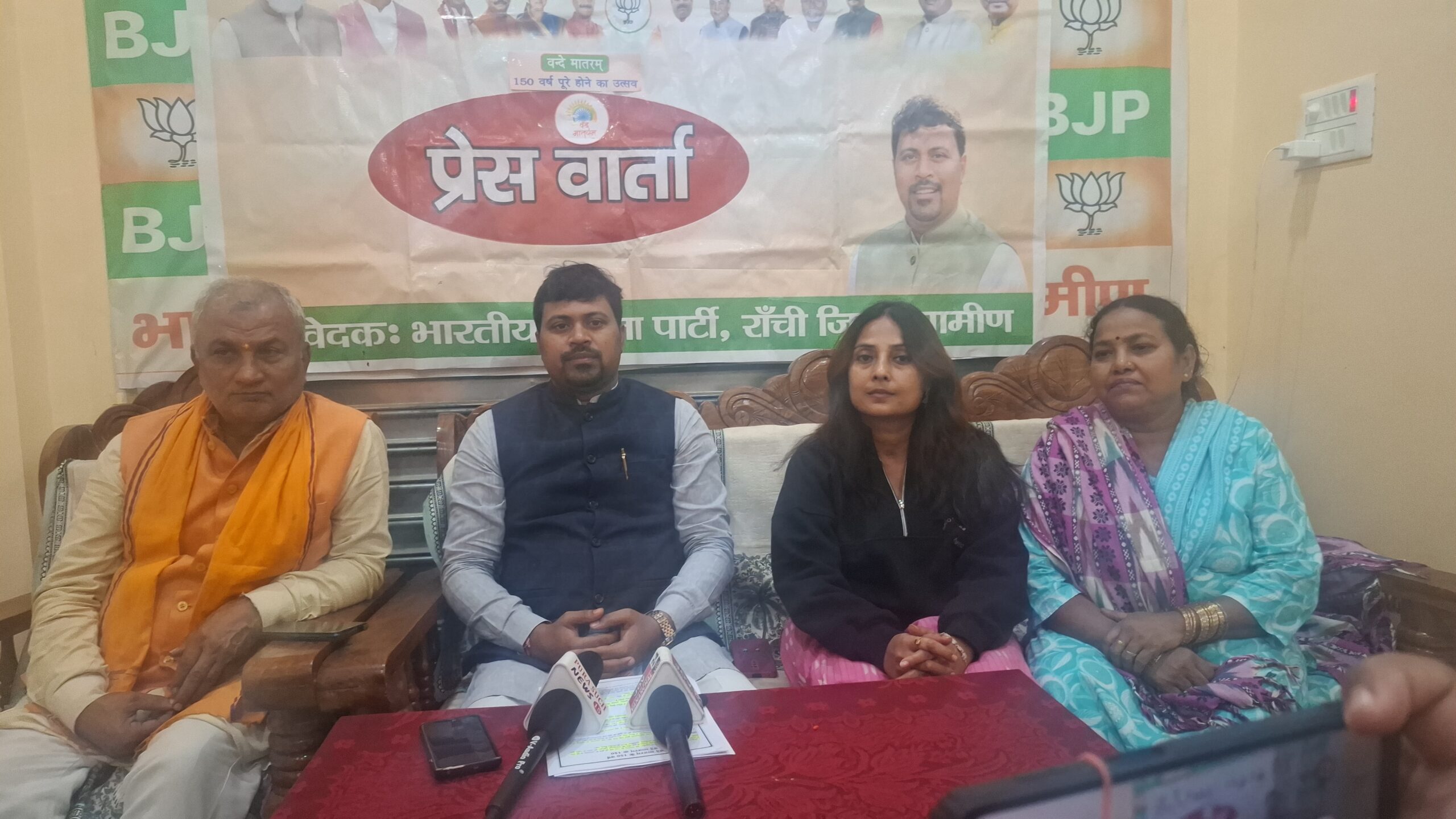 प्रेस वार्ता में वरिष्ठ भाजपा नेता प्रमोद कुमार सिंह, सह संयोजक प्रज्ञा भारती, और भाजपा नेत्री जयंती देवी उपस्थित थीं।