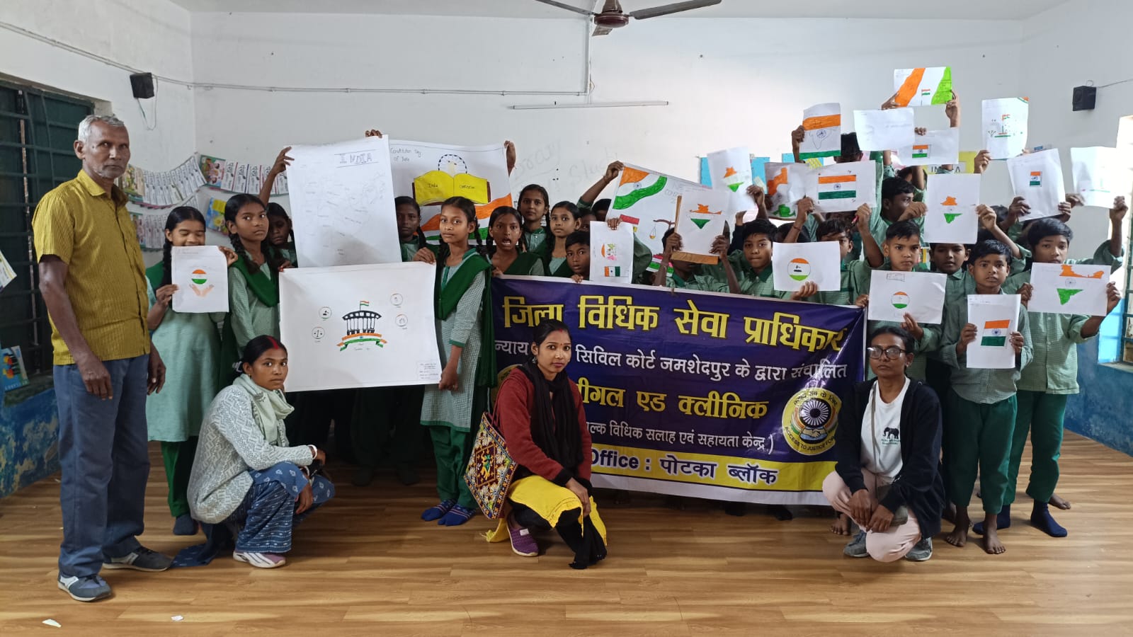 जमशेदपुर /पोटका । डालसा सचिव धर्मेंद्र कुमार के निर्देश पर पी एल वी उत्क्रमित मध्य विद्यालय चांदपुर पहुंचकर स्कूली बच्चों के साथ संविधान दिवस मनाया। बच्चों ने डालसा के पी एल वी के साथ प्रस्तावना का पाठ कर इसके अनुरूप चलने का शपथ लिया।पी एल वी ने बच्चों को उनके मौलिक अधिकार और कर्तव्य से अवगत कराया एवं डालसा के कार्य के बारे में जानकारी दी।इसी अवसर पर बच्चों ने चित्रांकन कर आज के दिवस को और भी प्रभावी बनाया और विभिन्न तरह की चित्र बना कर उसे रंगों से सजाया।बच्चों को किसी प्रकार की प्रमाण पत्र बनवाने हेतु या निःशुल्क विधिक सेवा प्राप्त करने के लिए जरूरत पड़े तो विधिक सहायता केंद्र चांदपुर में संपर्क करने के लिए कहा गया।मौके पर शिक्षकों के साथ डालसा के पी एल वी छाकु माझी,ज्योत्सना गोप,सबिता सोरेन,कुरुमीता मुर्मू,सुमित कुमार गोप आदि उपस्थित रहे।