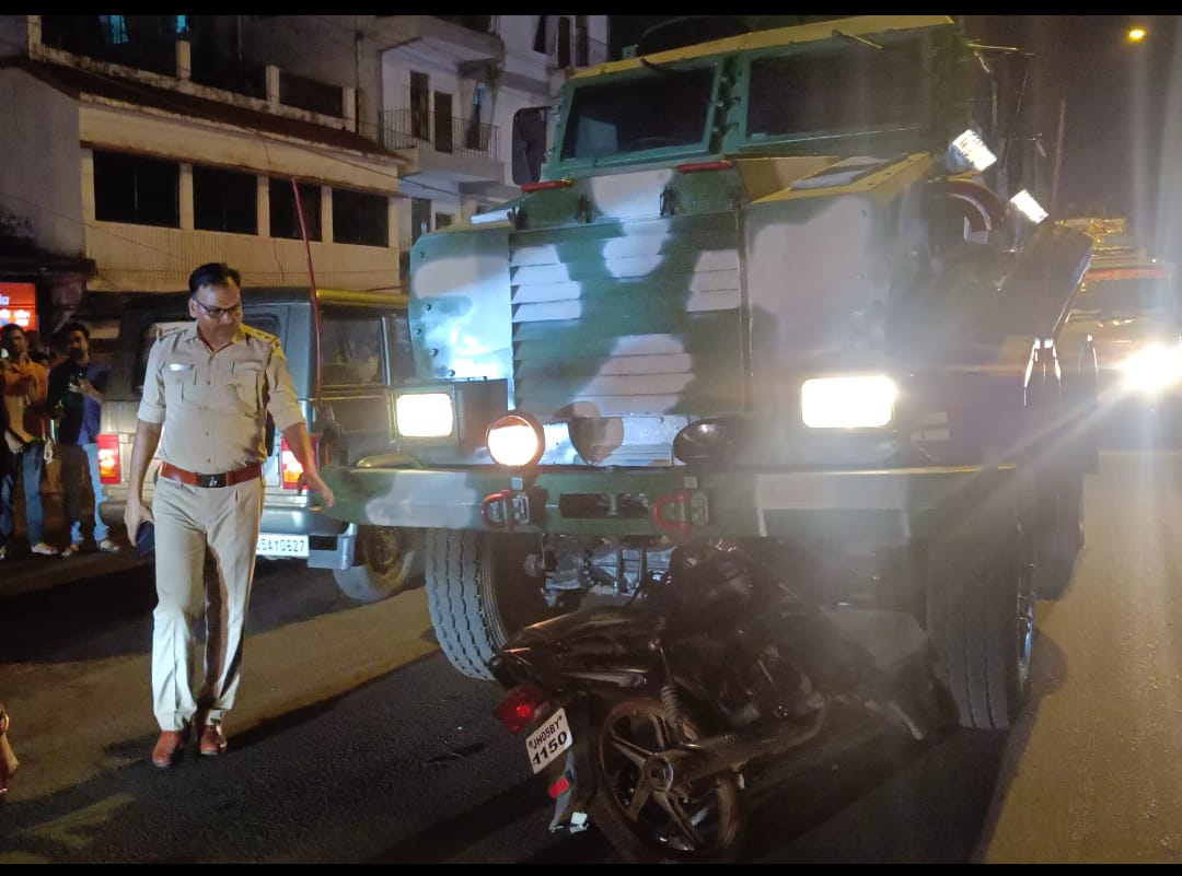सीआरपीएफ के वज्र वाहन और बाइक की टक्कर, युवक गंभीर रूप से घायल