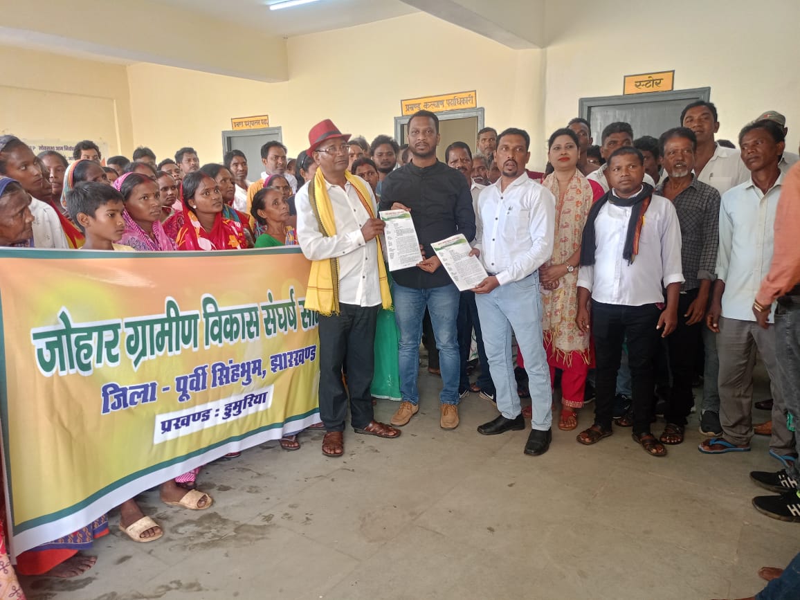 जोहर ग्रामीण विकास संघर्ष समिति बैनर तले सैकड़ो संख्या में ग्रामीण महिला ,एव पुरुष, द्वारा जमशेदपुर के डुमरिया प्रखंड मुख्यालय पहुंच कर, प्रदर्शन करते हुए डुमरिया प्रखंड के प्रखंड विकास पदाधिकारी निलेश कुमार मुरमू के माध्यम से प्रधानमंत्री, केंद्रीय सरकार एवं राज्य सरकार को 24 सूत्रीय मांग को लेकर ज्ञापन सोपा गया। लिखित ज्ञापन में मुख्य रूप जन समस्या, जो की जमीन स्तर के लोगों तक केंद्रीय एवं राज्य सरकार के सभी योजनाएं नहीं पहुंच पा रही है और विभिन्न मांग है जैसे कि सरकारी योजना रोड, रास्ता, नाली, किसी कारण बस अभिलंब हो रही है और उसे बनने में जो अवधि हो रही है।