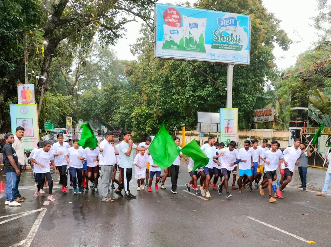 आज बुधवार को आयोजित मैराथन दौड़ मैं युवा छात्र-छात्राएं स्वच्छता ही सेवा के प्रति जागरूकता बढ़ाने में महत्वपूर्ण भूमिका निभाई। इस दौड़ का आयोजन स्थानीय नगर परिषद दुमका प्रयास से किया गया था। इस मैराथन का उद्देश्य लोगों को स्वच्छता के प्रति जागरूक करना. कार्यक्रम की शुरुआत अतिथि एवं विशेष अतिथि को बैच लगाकर से स्वागत किया गया। साथ ही नगर परिषद के लेखा पादधिकारी राजेंद्र रविदास , डॉ श्वेता स्वराज ब्रांड एंबेसडर जतिन कुमार के द्वारा संयुक्त रूप से झंडा दिखाकर मैराथन दौड़ का शुभारंभ किया गया।