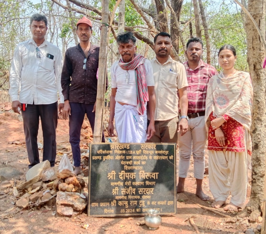 डुमुरिया : लखाईडीह में जाहेर थान व आश्रम की चारदीवारी निर्माण कार्य का हुआ शिलान्यास