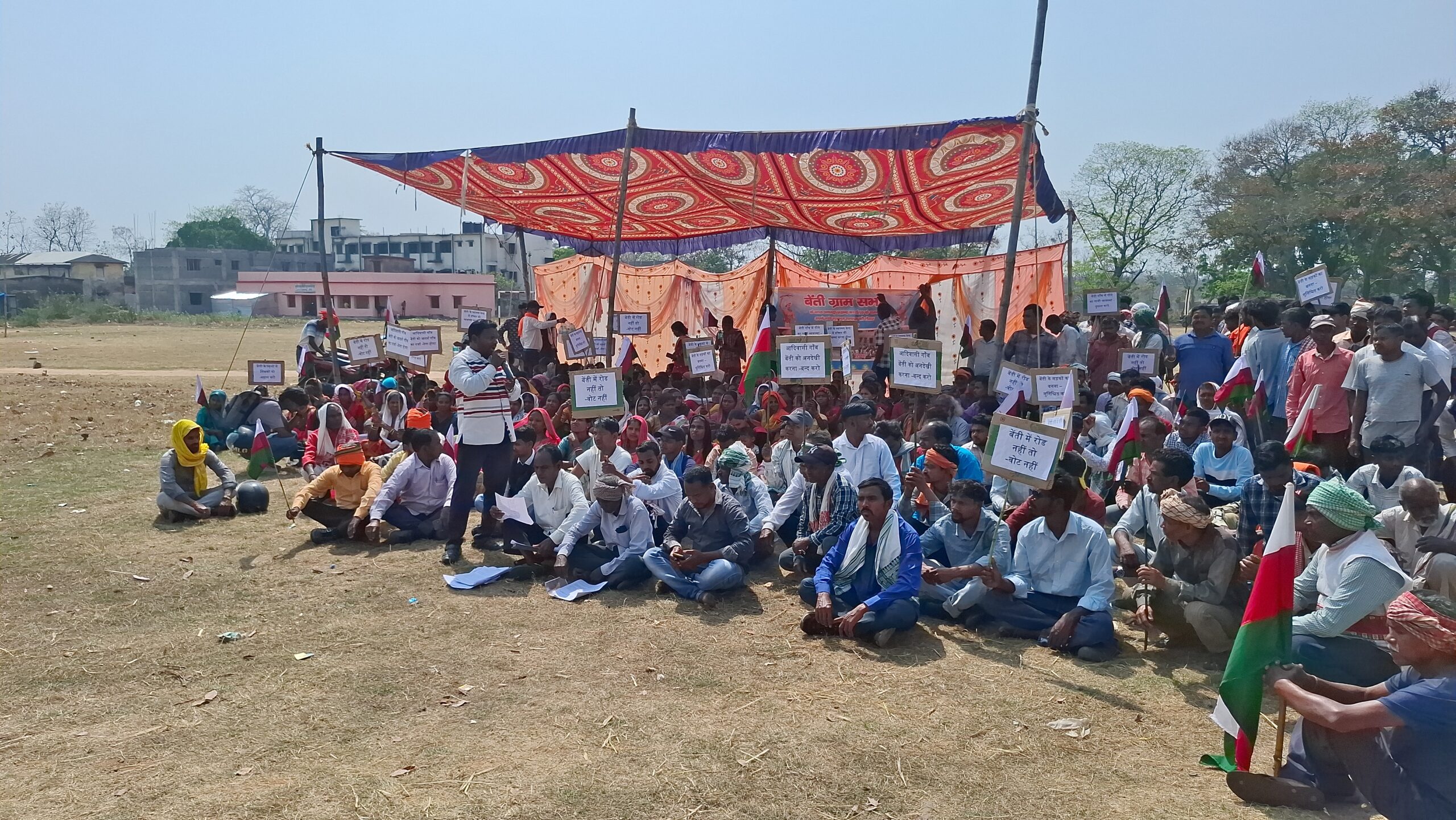 मूलभूत सुविधाओं की मांग को लेकर बेंती गांव के ग्रामीणों का अनगड़ा प्रखंड कार्यालय के समक्ष एक