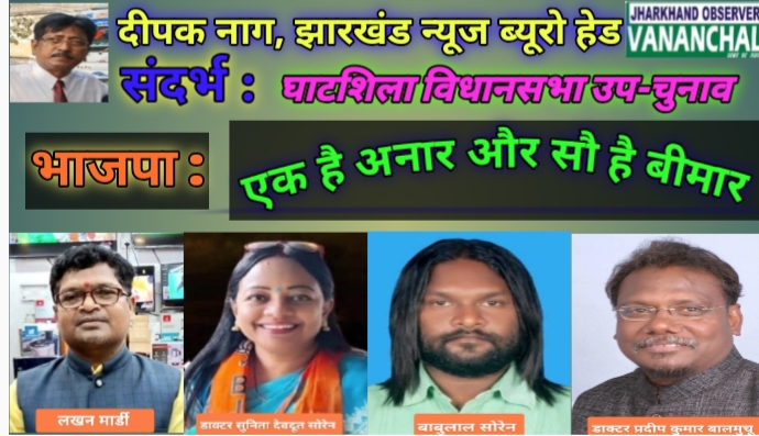 जब से झारखंड के चुनावी कुरुक्षेत्र में एनडीए और यूपीए/इंडिया ने गठबंधन का फार्मूला अपनाया, तब से देखा गया है कि, घाटशिला विधानसभा चुनाव में झामुमो और भाजपा के बीच सीधी टक्कर हुई है । स्पष्ट है कि, एक की जीत तो दुसरे की हार होगी। चुनावी समीकरण इतना सरल हो तो पार्टी टिकट पाने की दावेदारी बड़ जाती है और अपने भाग्य को आजमाने की चाहत रखतें हैं। यहीं जाकर भाजपा में “एक है अनार और सौ है बीमार” वाले कथन सार्थक दिखने लगती है। हां, झामुमो इस मुहावरे से अब तक बाहर नजर नजर आ रहा है।