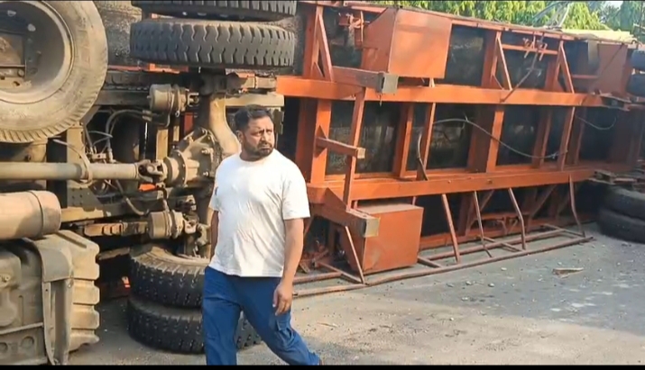 जमशेदपुर के साकची थाना अंतर्गत हाथी- घोड़ा मंदिर के समीप गैस सिलेंडर लदा एक टेलर अनियंत्रित होकर डिवाइडर से टकराकर पलट गया ।
