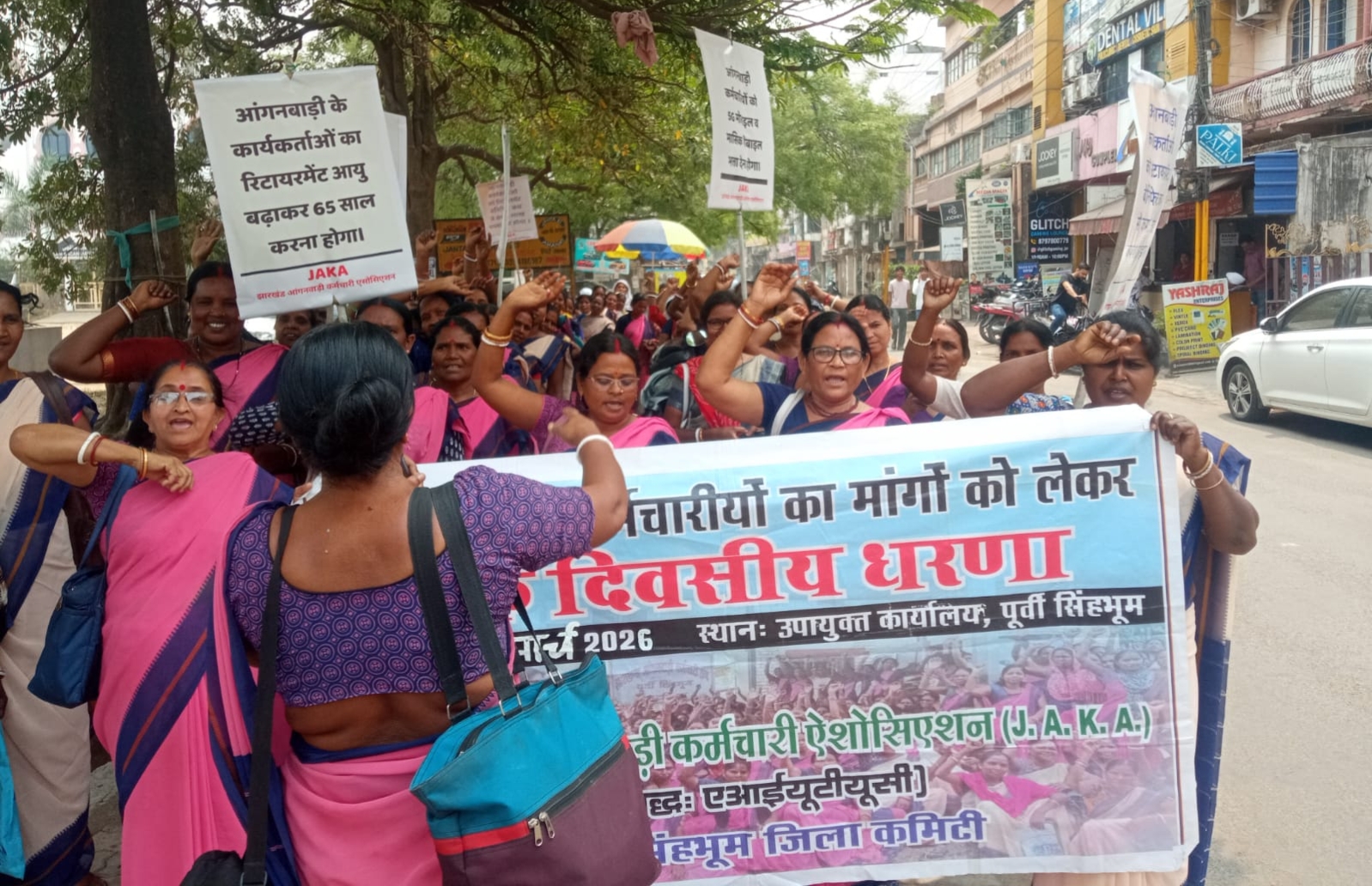 जमशेदपुर : आंगनबाड़ी कर्मचारीयों ने डीसी आफिस के समक्ष दिया धरना