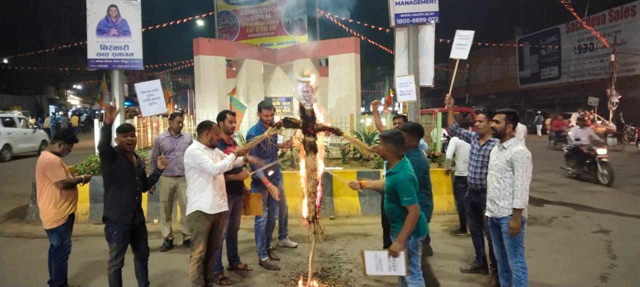 जमशेदपुर : युवा आवाज और बजरंग सेवा संस्थान के सयुंक्त तत्वाधान में मानगो गोलचक्कर में मनीष कच्छप के समर्थन में बिहार के मुख्यमंत्री का पूतला दहन किया गया. धर्मवीर महतो के अध्यक्षता में वीर खुदीराम बोस की प्रतिमा पर मार्लयापण किया गया और बिहार सरकार के युवा विरोधी रवैया के खिलाफ नारेबाज़ी करते हुए मानगो बजार में आकोश रैली निकाला गया और अंत में मुख्य चौक पर पुतला दहन किया गया .