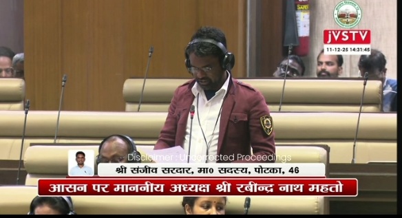 झारनेट से भूमि कार्य प्रभावित: पोटका विधायक संजीव सरदार ने सदन में उठाई आवाज, वेब वीपीएन व्यवस्था बहाल करने की मांग