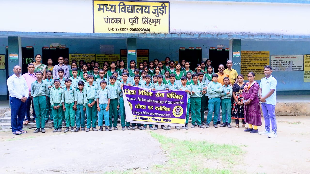 जमशेदपुर/पोटका । पोटका प्रखंड अंतर्गत जुड़ी पंचायत के जुड़ी मध्य विद्यालय में डालसा (जिला विधिक सेवा प्राधिकरण) के तत्वावधान में स्कूली बच्चों के लिए विधिक जागरूकता कार्यक्रम का आयोजन किया गया। कार्यक्रम डालसा सचिव धर्मेंद्र कुमार के निर्देश पर आयोजित हुआ। इस दौरान उपस्थित पी.एल.वी. (पैरालीगल वालंटियर्स) ने बच्चों को जिला विधिक सेवा प्राधिकरण द्वारा दी जा रही निःशुल्क विधिक सहायता की जानकारी विस्तार से दी। बच्चों को बताया गया कि आर्थिक रूप से कमजोर, आदिवासी, महिलाएँ, बच्चे, दिव्यांगजन तथा जिनकी वार्षिक आय तीन लाख रुपये से कम है, उन्हें आवश्यक कानूनी सहायता निःशुल्क उपलब्ध कराई जाती है। कार्यक्रम में बच्चों को उनके मौलिक अधिकार एवं कर्तव्य, शिक्षा का अधिकार, गुड टच–बैड टच, बाल विवाह, बाल मजदूरी, जेंडर आधारित हिंसा, डायन प्रथा, मानव तस्करी, भ्रूण हत्या, नशा मुक्ति, घरेलू हिंसा, साइबर ठगी आदि मुद्दों पर जागरूक किया गया।