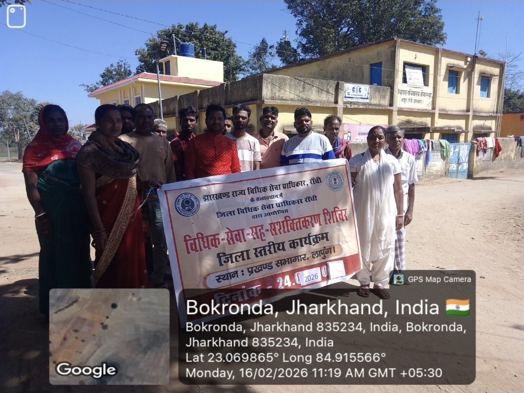 रांची । न्यायामूर्ति-सह-कार्यपालक अध्यक्ष झालसा श्री सुजीत नारायण प्रसाद के दिशा-निर्देश पर, सदस्य सचिव झालसा कुमारी रंजना अस्थाना एवं न्यायायुक्त-सह-अध्यक्ष श्री अनिल कुमार मिश्रा-1 के मार्गदर्शन में तथा डालसा सचिव की देखरेख में लापुंग प्रखंड के बोकरोन्दा पंचायत भवन में नालसा द्वारा संचालित योजना ‘डॉन’ के तहत विधिक जागरूकता कार्यक्रम का आयोजन किया गया। इस अवसर पर पीएलवी प्रदेशिया महली, प्रतिमा देवी, ललिता देवी सहित अन्य उपस्थित थे।