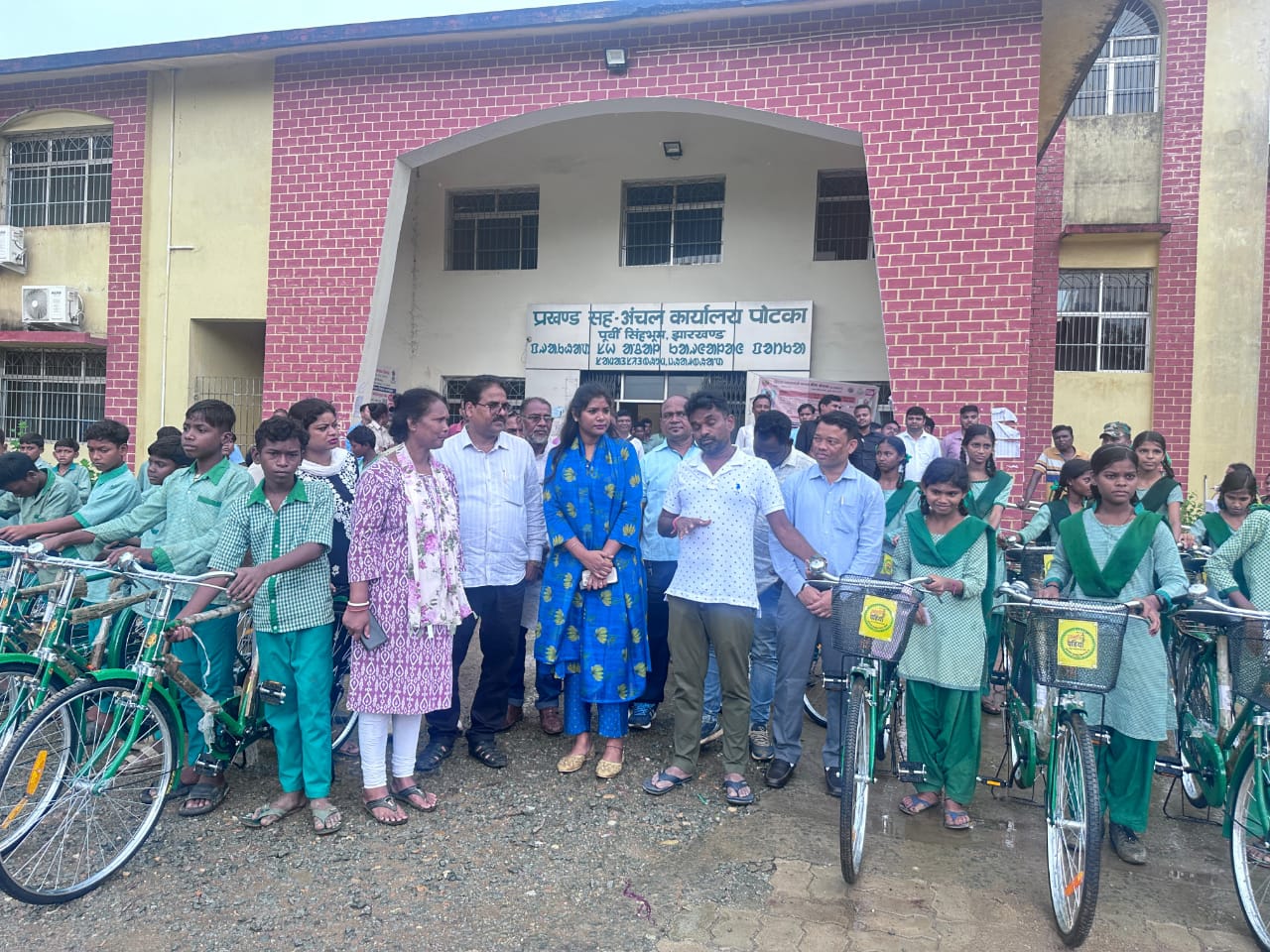 जमशेदपुर/पोटका । झारखंड सरकार के कल्याण विभाग की महत्वाकांक्षी ‘उन्नति का पहिया योजना’ अंतर्गत मंगलवार को पोटका प्रखंड मुख्यालय में नि:शुल्क साइकिल वितरण कार्यक्रम का शुभारंभ किया गया। मुख्य अतिथि के रूप में पोटका विधायक संजीव सरदार ने इसका उद्घाटन किया। इस दौरान प्रखंड क्षेत्र के 12 स्कूलों के कक्षा आठवीं के 450 छात्र-छात्राओं को साइकिलें प्रदान की गईं।
