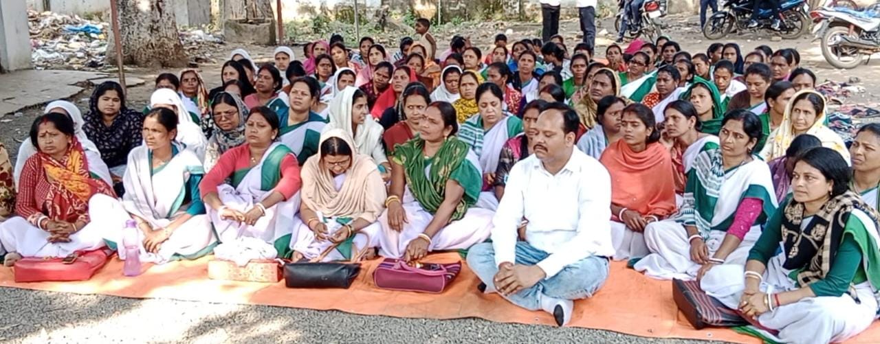 पाकुड़ रणविजय गुप्ता (संथाल ब्यूरो) झारखंड प्रदेश स्वास्थ्य सहिया संघ अपने वेतन वृद्धि की मांग को लेकर अनिश्चितकालीन हड़ताल पर स्वास्थ्य सेवाएं हुई प्रभावित संपूर्ण मानवता कल्याण संघ के अध्यक्ष डॉ संजय गिरी सहिया के समर्थन में पहुंचे पाकुड़ महेशपुर सामुदायिक स्वास्थ्य केंद्र परिसर , इसके पहले उन्होंने बहरागोड़ा , सरायकेला, धनबाद , दुमका , घाटशिला स्थित माझी परगना महाल भवन पावड़ा से सहियाओं की मांग लेकर आंदोलन अनुमंडल अस्पताल तक विशाल रैली निकालकर शक्ति प्रदर्शन किया , उन्होंने पाकुड़ जिला में सहियाओं टीम का गठन किया , डॉ संजय गिरी पाकुड़ के सहियाओं की मांग लेकर उनके समर्थन में पाकुड़ पहुंचे. मौके पर झारखंड प्रदेश स्वास्थ्य सहिया संघ के प्रदेश अध्यक्ष पंपा मंडल सहित सैकड़ों की संख्या में सहिया उपस्थित थी.