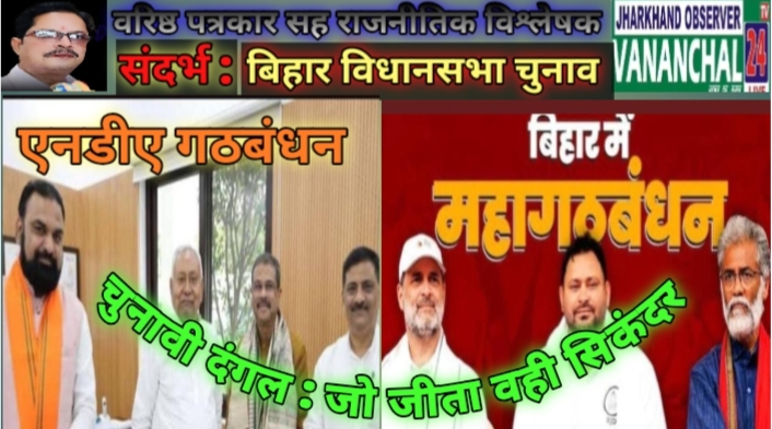 फिलहाल, एक ओर जहां चुनाव आयोग, बिहार में चुनाव की तैयारियों को लेकर कमर कस कर लगी हुई है, वहीं दोनों इधर गठबंधन सीट शेयरिंग के अंतिम दौर से गुजरते हुए उम्मीदवारों के नामों पर मुहर लगाने में जुटी दिखाई दे रही है। दोनों गठबंधन के नेता अपनी एकता को चट्टानी साबित करने में बयानों से चुक नहीं रहे हैं, पर सीट शेयरिंग को लेकर आंकड़ों की बात पर गोलमोल जबाब दे रहे हैं। अब चुनावी विगुल बजने के बाद एक एक दिन दोनों गठबंधनों के लिए भारी पड़ रहा है। वैसे मंगलवार का दिन में सीट शेयरिंग को लेकर बहुत सारी बातें सामने आने की उम्मीद है। सीट शेयरिंग की घोषणा के बाद ही गठबंधनों में चट्टानी एकता कितनी है, पता चल पायेगा।
