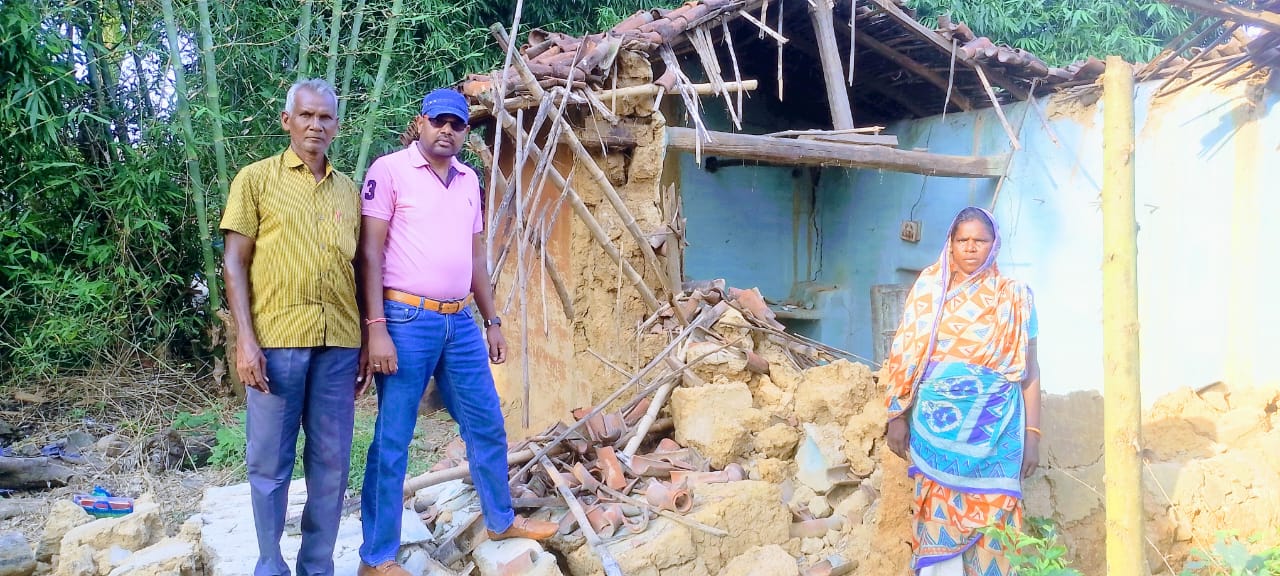 जमशेदपुर/ पोटका । डालसा सचिव धर्मेंद्र कुमार के निर्देश पर घिरोल पंचायत अंतर्गत चेमाईजुड़ी गांव निवासी कालोमती गोप से मिले डालसा के पी एल वी चयन कुमार मंडल। उन्होंने उसके टूटे हुए घर को देखा और आपदा से हुए क्षति की जानकारी ली बीते सप्ताह रात को आए बारिश के साथ तेज हवा ने उसके घर के ऊपर कहर बन कर टूट पड़ा बेचारी का सर छिपाने के लिए जो एक मात्र घर था उसके घर की दीवारें गिर गई। भाग्य से उसके परिवार बाल बाल बच गया। उस मनहूस रात में भी हमेशा की तरह उसी घर में सटे बरेंदे में पीड़िता का परिवार सोया हुआ था।प्राकृति की प्रकोप से विधवा को बेघर कर दिया।पी एल वी चयन कुमार मंडल एवम छाकु माझी ने सारे वस्तुस्थिति से अवगत होते हुए पीड़िता से एक आवेदन अंचल अधिकारी पोटका के नाम से मुआवजा दिलवाने के लिए लिया गया एवं त्वरित कार्रवाई करते हुए आवेदन अंचल अधिकारी कार्यालय पोटका में जमा कर दिया गया साथ ही क्षेत्रीय कर्मचारी को पीड़िता के आवेदन के आधार पर जांच कर त्वरित रिपोर्ट अंचल को सौंपने के लिए आग्रह किया गया ताकि समय पर पीड़िता को उचित मुआवजा मिल जाए।मौके पर कालोमती गोप के साथ डालसा के पी एल वी चयन कुमार मंडल एवम छाकु माझी उपस्थित रहे।