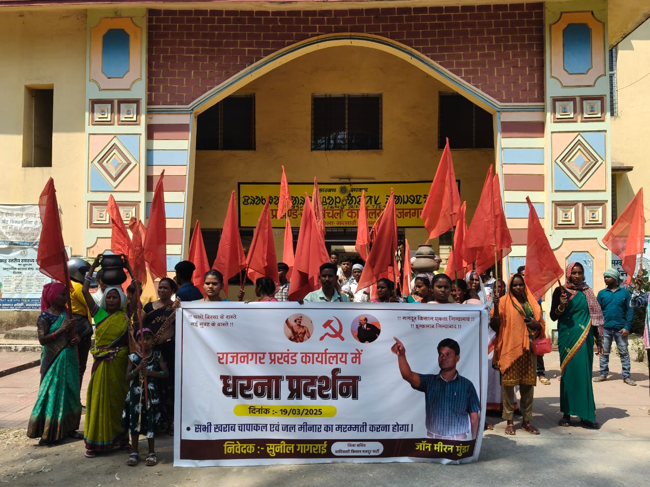 बता दें कि, प्रदर्शनकारी ने राजनगर शिद्धु-कान्हु चौक से लाल झंडा हाथ मे लिए राजनगर प्रखंड कार्यालय तक पदयात्रा किया । प्रखंड कार्यलय के बाहर पीएचडी विभाग और प्रखंड विकास पदाधिकारी के खिलाफ नारे लागए । इस दौरान आदिवासी मजदूर किसान पार्टी के जिला सचिव सुनील गागराई ने कहा कि, बीते 5 मार्च को खराब चापानल एवं जल मीनार मरम्मती की मांग को लेकर प्रखंड विकास पदाधिकारी को आवेदन दिया गया था, परन्तु इस पर कोई पहल नही होने पर, प्रखंड कार्यालय में धरना प्रदर्शन किया जा रहा है। ताकि विभाग के पाधिकारी इस मामले को संज्ञान में लें, क्योंकि इन दिनों तापमान काफी बड़ गया है और ऐसे में राजनगर प्रखंड क्षेत्र के कई ऐसे गांव है जहां चापानल खराब हो चुके है, जल मीनार खराब पड़ा है, पेयजल संकट गहरा गया है । ग्रामीण तालाब और कुंआ का पानी पीने को मजबूर है।