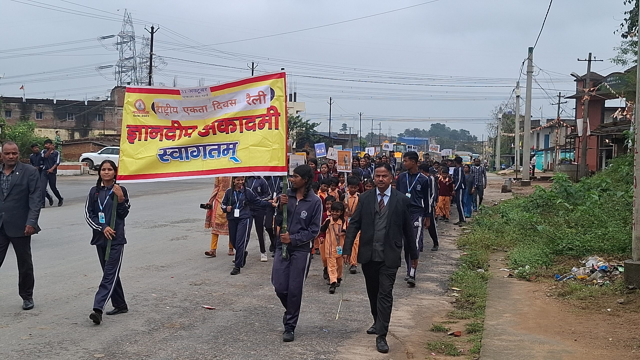 अनगड़ा(राँची) । राष्ट्रीय एकता दिवस के अवसर पर ज्ञानदीप अकादमी मंझिला टोली में रैली का आयोजन किया गया। विद्यालय की प्राचार्या सुनीता देवी, वाइस प्रिंसिपल मनोज गुप्ता आशा रानी, शिक्षिका प्रीति कुमारी, सुभानी, शुष्मा शुल्ताना और किरण देवी की अगुवाई में छात्र-छात्राओं ने हाथों में तख्तियां लेकर “एक भारत, श्रेष्ठ भारत” और “हम सब एक हैं” जैसे नारे लगाए। रैली विद्यालय परिसर से प्रारंभ होकर एफसीआई गोदाम, हेसल मोड़ होते हुए पुनः विद्यालय परिसर में संपन्न हुई। पूरे मार्ग में बच्चों ने देशभक्ति के नारों से वातावरण को गुंजायमान कर दिया। इस अवसर पर डायरेक्टर प्रकाश महतो ने कहा कि “सरदार वल्लभभाई पटेल ने अपने दृढ़ संकल्प, निष्ठा और दूरदर्शिता से देश को एकता के सूत्र में पिरोया था। उन्होंने 562 रियासतों को एकजुट कर आधुनिक भारत की नींव रखी।”