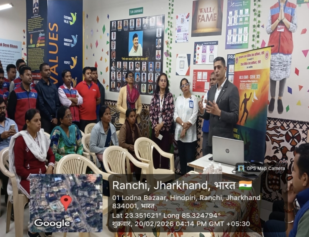 रांची । न्यायायुक्त, रांची श्री अनिल कुमार मिश्रा-1 के नेतृत्व में तथा डालसा सचिव श्री राकेश रौशन की देखरेख में नालसा द्वारा संचालित योजना ‘डॉन–2025’ के तहत युवाओं को नशा से बचाने के उद्देश्य से विधिक जागरूकता कार्यक्रम का आयोजन दिनांक 20.02.2026 को रिलायंस स्मार्ट स्टोर, जे.सी. टॉवर, मेन रोड, रांची में किया गया। इस अवसर पर लाइफ सेवर्स एनजीओ के प्रमुख श्री अतुल गेरा, डालसा के पीएलवी संगीता देवी, साहिष्ता प्रवीण, मुन्नी देवी, नमिता कुमारी, प्रदीप नाग एवं अन्य उपस्थित थे। लाइफ सेवर्स एनजीओ के प्रमुख अतुल गेरा ने कहा कि नशा हमारे देश को खोखला कर रहा है। नशा से बचाव हेतु छात्र-छात्राओं के बीच विधिक जागरूकता कार्यक्रम का आयोजन आवश्यक है। डालसा की पीएलवी संगीता देवी ने युवाओं को नशा न करने की सलाह देते हुए कहा कि नशा से तन और धन दोनों की हानि होती है। साहिष्ता प्रवीण और मुन्नी देवी ने कहा कि जागरूकता के माध्यम से नशामुक्त समाज का निर्माण करना ही डालसा का उद्देश्य है। प्रदीप नाग ने भी नशा से होने वाली हानियों के बारे में लोगों को जानकारी दी।