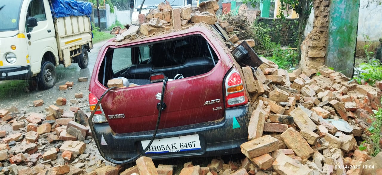 लगातार बारिश के कारण सड़कों और बाजार क्षेत्र में लोगों की आवाजाही एवं चहल पहल कम रही। इसी क्रम में नगर क्षेत्र के पटनायक टोला निवासी शिक्षक तरुण सिंह अपने घर के बगल में अपनी अल्टो कार खड़ी कर घर में प्रवेश कर ही रहे थे, तभी अचानक से बगल के खंडहर नुमा पुराना मकान अचानक से ढह गया।
