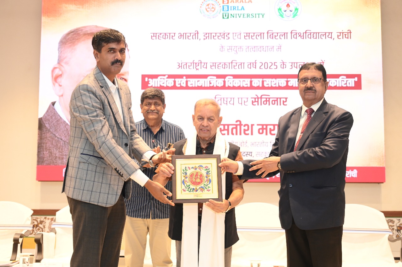 राँची/ नामकुम । अंतर्राष्ट्रीय सहकारिता वर्ष के उपलक्ष्य में सहकार भारती, झारखंड एवं सरला बिरला विश्वविद्यालय, रांची के संयुक्त तत्वावधान में आज ‘आर्थिक एवं सामाजिक विकास का सशक्त माध्यम सहकारिता ‘ विषय पर संगोष्ठी का आयोजन किया गया। सरला बिरला विश्वविद्यालय में आयोजित कार्यक्रम के मुख्य अतिथि सहकार भारती के संस्थापक सदस्य एवं भारतीय रिजर्व बैंक के केंद्रीय बोर्ड के निदेशक सतीश मराठे ने सहकारिता के विभिन्न आयामों, इसके कार्यकलापों तथा देश के विकास की राह में इसके योगदान की विस्तार से जानकारी दी। उन्होंने आज के दौर में आठ लाख सहकारी समूहों में से तकरीबन साढ़े लाख समूहों के प्रत्यक्ष आर्थिक गतिविधियों से जुड़ाव की बात कही। विकसित और आत्मनिर्भर भारत को गढ़ने में कोऑपरेटिव सेक्टर की अहम भूमिका तथा तकरीबन 30 करोड़ भारतीयों के इससे जुड़े होने से जीडीपी में इसके योगदान की भी उन्होंने चर्चा की।