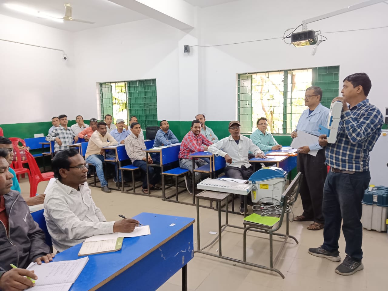 साथ ही ईवीएम हैंड्स ऑन कराया गया एवं ईवीएम से संबंधित सभी बिंदुओं को व्यावहारिक रूप से बताया गया।उक्त प्रशिक्षण तरुण कुमार सिंह, ब्रजमोहन यादव, मनोज कुमार सिंह, राजेश मिश्रा, अजीत कुंभकार, जयदेव त्रिपाठी, अविनाश कुमार मिश्रा, श्याम सुंदर पाल, अरविंद कुमार, नयन मणि दास, आशीष कुमार मल्लिक, दिनेश कुमार दास, सुदीप मुखर्जी, सुधाकर ठाकुर, प्रभाशंकर तिवारी, परमेश्वर महतो, विचित्रा प्रधान, गणेश सरदार, अनूप कुमार मंडल, प्रदीप कुमार माजी, पूर्ण चंद्र रजक, आलोक कुमार, घनश्याम महतो, इंदू भूषण प्रसाद, सुभाशिष कुमार सेन आदि के द्वारा दिया गया।