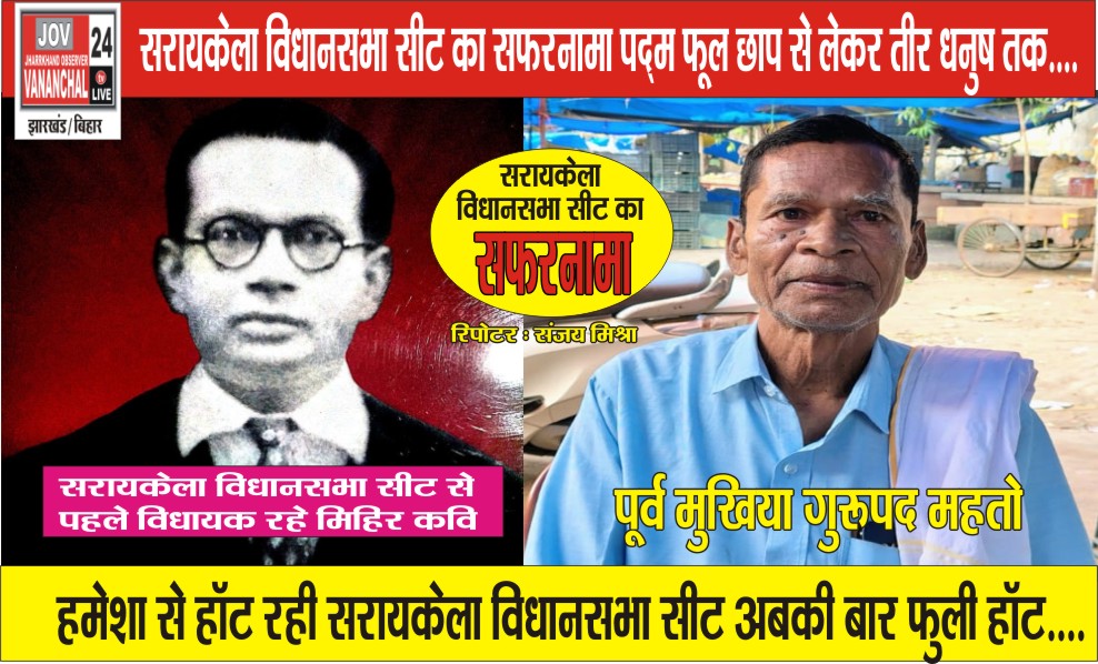 सरायकेला -संजय मिश्रा । झारखंड प्रदेश के लिए हमेशा से ही महत्व की सीट रही सरायकेला विधानसभा सीट का राजनीतिक सफरनामा बड़ा ही रोचक और पब्लिक ओरिएंटेड रहा है। शुरू से ही प्रदेश के लिए हॉट सीट रही सरायकेला विधानसभा सीट वर्ष-2024 के विधानसभा चुनाव में अत्यधिक हॉट बनी हुई है। जिसे लेकर वर्तमान में उम्मीदवारी और उम्मीदवारों तथा कार्यकर्ताओं की रस्साकसी और उछल कूद जारी है।