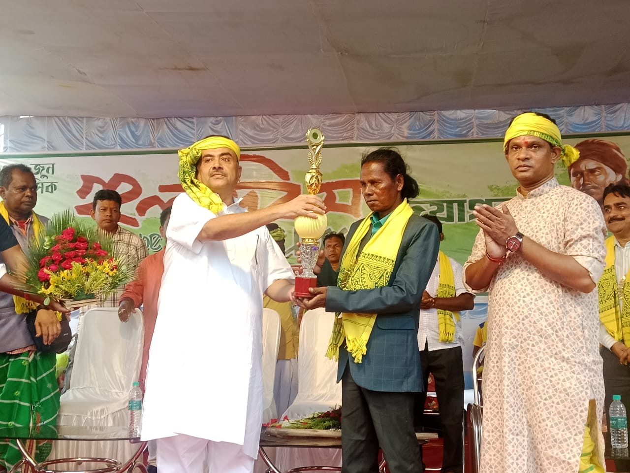 शुभेंदु अधिकारी ने कहा कि “आज के ऐतिहासिक दिन पर संथाली भाषा के सुप्रसिद्ध गायक सीमल टुडू से मिलना और उन्हें पुनः संगीत के क्षेत्र में सक्रिय देखना मेरे लिए गर्व और खुशी की बात है।” उन्होंने सीमल टुडू को अंगवस्त्र और शील्ड भेंट कर सम्मानित किया। फागुन कोयल के नाम से प्रसिद्ध सीमल टुडू का योगदान न केवल बंगाल में बल्कि झारखंड, उड़ीसा और असम जैसे राज्यों में भी संगीत प्रेमियों के बीच अमिट छाप छोड़ चुका है। आज भी संथाल बहुल क्षेत्रों में उनके चाहने वालों की संख्या काफी है। कार्यक्रम के दौरान शिक्षा के क्षेत्र में उल्लेखनीय कार्य करने पर माधवी मुर्मू को भी सम्मानित किया गया। साथ ही, सीमल टुडू ने भी मंच से कला, संस्कृति और खेल के क्षेत्र में सक्रिय व्यक्तियों को सम्मानित किया और स्वतंत्रता सेनानी सिदो-कान्हू के बलिदान को याद करते हुए एक भावुक गीत भी प्रस्तुत किया, जिसे सुनकर उपस्थित जनसमूह भावविभोर हो उठा। इस अवसर पर डॉ. प्रणव टुडू, उड़ीसा के संथाली गायक मंगल हंसदा, प्रभास सोरेन, भूपेन सिंह, दीपू मांडी समेत कई गणमान्य लोग उपस्थित थे। सीमल टुडू से मिलने और उन्हें देखने के लिए लोग दूर-दूर से कार्यक्रम में पहुंचे थे।