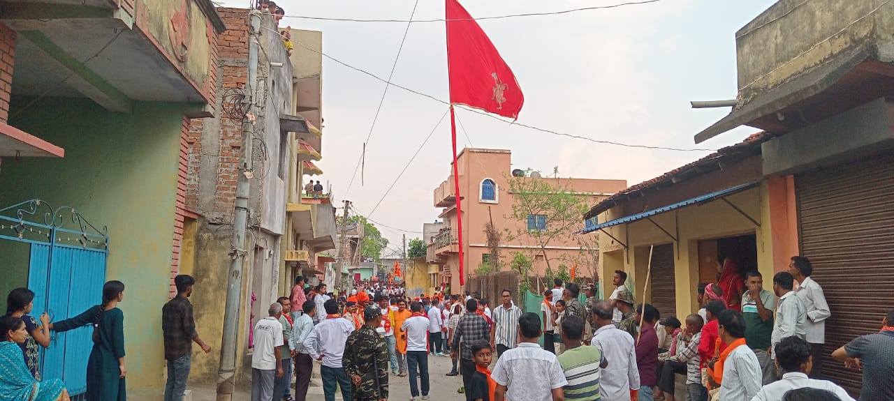 पूर्वी सिंहभूम पोटका प्रखंड क्षेत्र के हल्दीपोखर में विजय बजरंग अखाड़ा के लाइसेंसी रतन सोनकर के नेतृत्व में भग्य रामनवमी जुलूस गाजे बाजे के साथ शांतिपूर्ण और सौहार्दपूर्ण महल में निकाला गया। इस आयोजन में जय श्री राम के नारे लगाते हुए हजारों संख्या मे राम भक्त शामिल हुए। जुलूस में युवाओं के द्वारा तलवार, डंडा, घूमना, छाती पर ईंटे तोड़ना सहित एक से बढ़कर एक खेल प्रस्तुत कर, लोगों को मनोरंजन कराया । वही रामनवमी‌ जुलूस निकालने के पहले विजय बजरंग अखाड़ा के द्वारा आमंत्रित अतिथियो स्थानीय विधायक संजीव सरदार, पूर्व विधायक मेनका सरदार, पूर्व विधायक अनंत राम टुडू, पूर्व विधायक कुणाल षांडगी, पोटका सीओ निकिता वाला, सुनील महतो, पूर्व जिला परिषद सदस्य चंद्रावती महतो, बबलू चौधरी, सुधीर सोरेन, विभीषण सिंह सरदार, मुखिया कार्तिक मुर्मू ,सिंमति सरदार, उप मुखिया ओम प्रकाश गुप्ता, देव पालित, समाजसेवी पिंटू गुप्ता, आनंदपाल, भुवनेश्वर सरदार, जयपाल मुंडा, भगत बास्के, समेत अन्य गणमान्य लोगों को सम्मानित किया गया। समाजसेवी विभीषण सिंह सरदार के द्वारा अखाड़ा के लाइसेंसी रतन सोनकर, अध्यक्ष संतोष मंडल, कोषाध्यक्ष विजय केड़िया, सचिव कृष्ण प्रसाद गुप्ता, समेत अन्य को पागड़ी पहनाकर सम्मानित किया गया। रामनवमी जुलूस को शांतिपूर्ण ढंग से संपन्न कराने हेतु प्रशासन चौकस रहा। प्रशासन की ओर से ड्रोन कैमरा का माध्यम से निगरानी रखी जा रही थी। प्रशासन की ओर से मुख्य रूप से ग्रामीण एसपी ऋषभ गर्ग, मुसाबनी डीएसपी संदीप भगत, सीईओ निकिता वाला, वीडियो अरुण कुमार मुंडा, इंस्पेक्टर प्रवेश चंद्र सिन्हा, थाना प्रभारी मुकेश कुमार साव, सब इंस्पेक्टर अजंता महतो, सिदो मुर्मू , मोमिन अंसारी , के साथ दर्जनों की संख्या में पुलिस बल उपस्थित रहे।रामनवमी जुलूस हल्दीपोखर बजरंगबली मंदिर से बंगाली पाड़ा, मंडल पाड़ा होते हुए रंकनी मंदिर एवं वापस बागती पाड़ा होते हुए कमल तालाब लाया गया, जहां झंडा को ठंडा कर समापन किया गया। इस मौके पर काफी संख्या में भक्तों उपस्थित रहे।