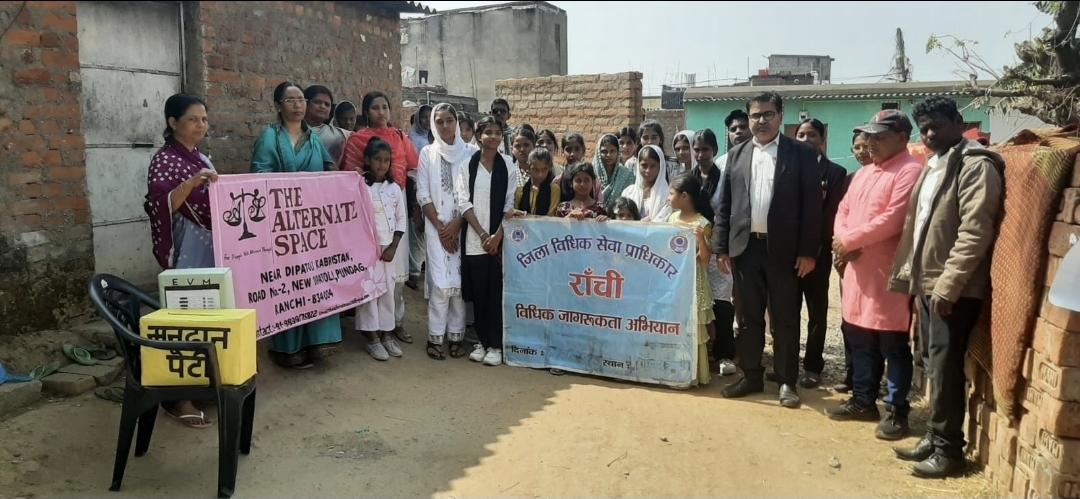 रांची । झालसा के कार्यपालक अध्यक्ष सुजित नारायण प्रसाद के दिशा-निर्देश तथा सदस्य सचिव कुमारी रंजना अस्थाना एवं न्यायायुक्त, रांची अनिल कुमार मिश्रा-1 के मार्गदर्शन में तथा डालसा सचिव की देखरेख में दीपाटोली रोड नम्बर-3, पुन्दाग के समीप मतदाता जागरूकता कार्यक्रम का आयोजन किया गया।