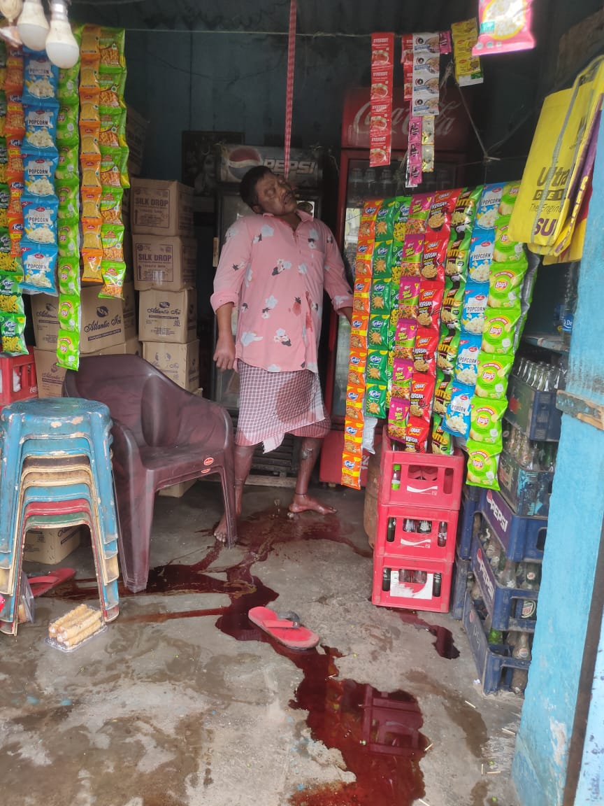 एनआईटी रोड स्थित एक बंद दुकान के शटर के नीचे से बहता खून देख मचा हड़कंप