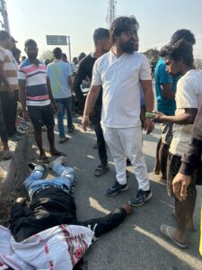 एनएच-33 पर दर्दनाक हादसा: अज्ञात वाहन की चपेट में युवक की मौत, हाईवे किंग शेखर गांगुली ने पहुंचकर कराई मदद